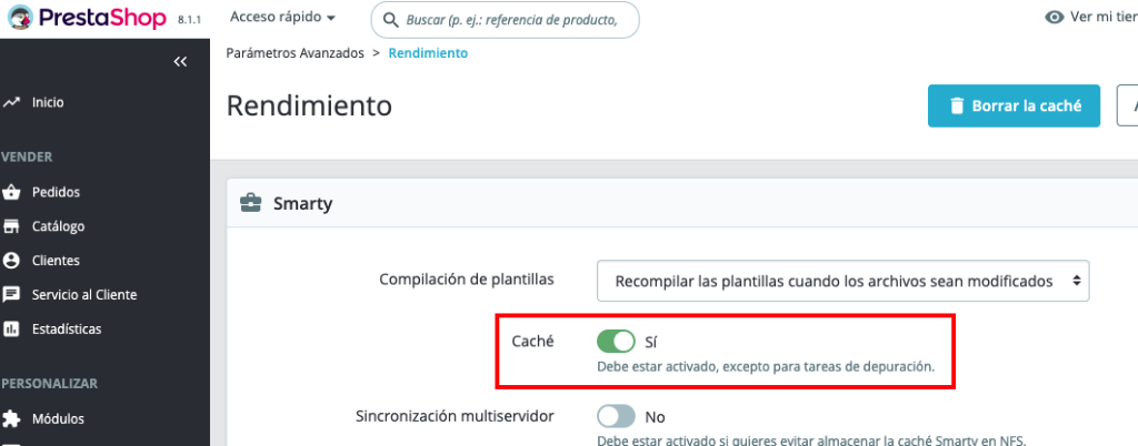 1. Activar la caché de PrestaShop